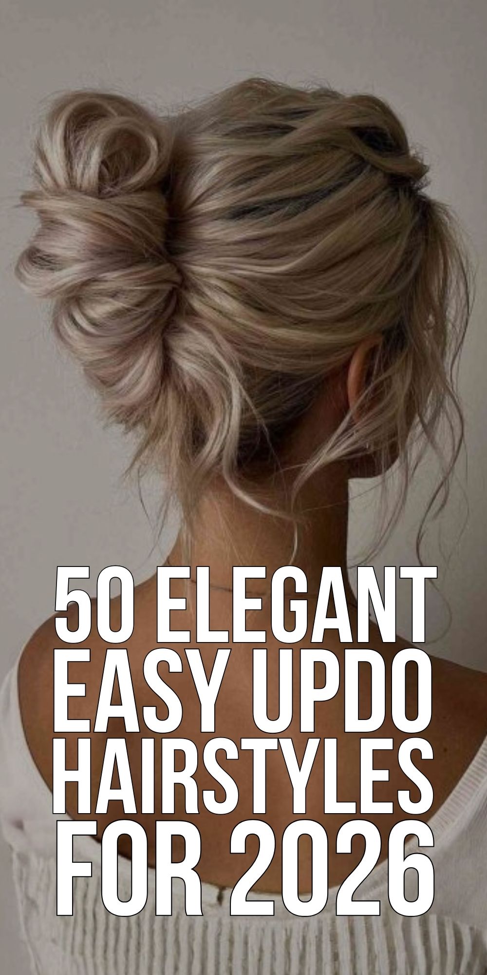 Graceful and airy, this soft updo features a rolled tuck that frames the back of the head in a flattering sweep. It’s a beautiful choice for weddings or formal events, especially on fine to medium textured hair with subtle highlights. Best suited to soft face shapes like heart or oval, the style gives light volume without overcomplicating the look. The loose front pieces add to its romantic feel but may need a light setting spray to prevent flyaways.